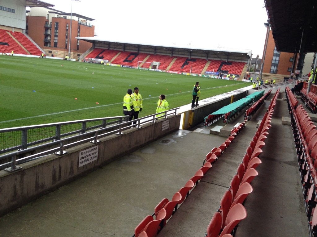 The main stand where Bees fans were also resembled a derelict ground. Many seats had been pulled out or off long ago, replacements were randomised to colour and type ( wood or plastic) or simply not replaced. Appalling for a club that charges £25 a seat.
