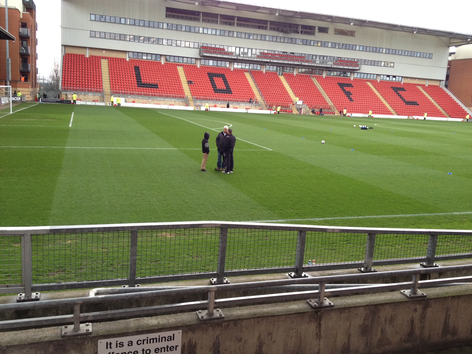 On arriving home from this game I was about to enter into a full-scale rant but the events around Muamba are so much more important. Nevertheless this was an abysmal performance by Brentford. There was little effort, leadership or anything positive. A huge number of fans braved the Central line to Brisbane Road and were frankly let down. £25 to get in was the first unpleasant surprise. The quality of Brentford’s football was the second. The ground itself is a curious affair. Anyone who cares can look on my football grounds website http://www.footballgroundz.co.uk and see what it used to be like. Now it has housing developments on each corner and the main stand is a mixture of football stand, medical polyclinic and offices. People sit on their balconies and watch the football for free from the corner of the ground.