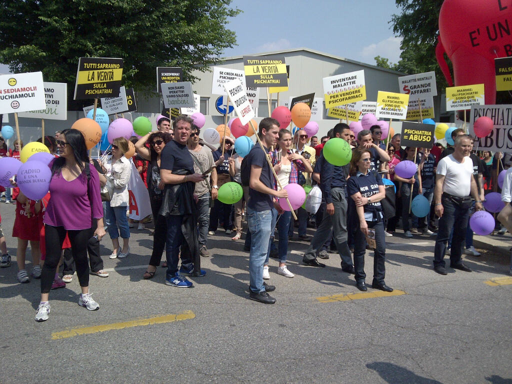 My third and final musing over Milan. Whilst walking outside the Milan Convention Centre where an ADHD congress was taking place, a group of maybe 200 protestors aged from 5-60 years. Placards, balloons and a huge inflatable buffalo. The signs do not make sense to me but generally seemed to be protesting against ADHD. No idea why. A lively group but not really threatening at all.