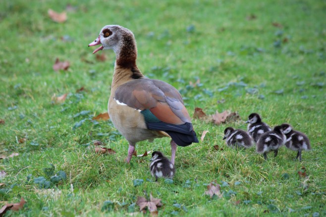 Egyptian Goose and Goslings .Painshill Park in Cobham. Copyright Chris Bushe 2016