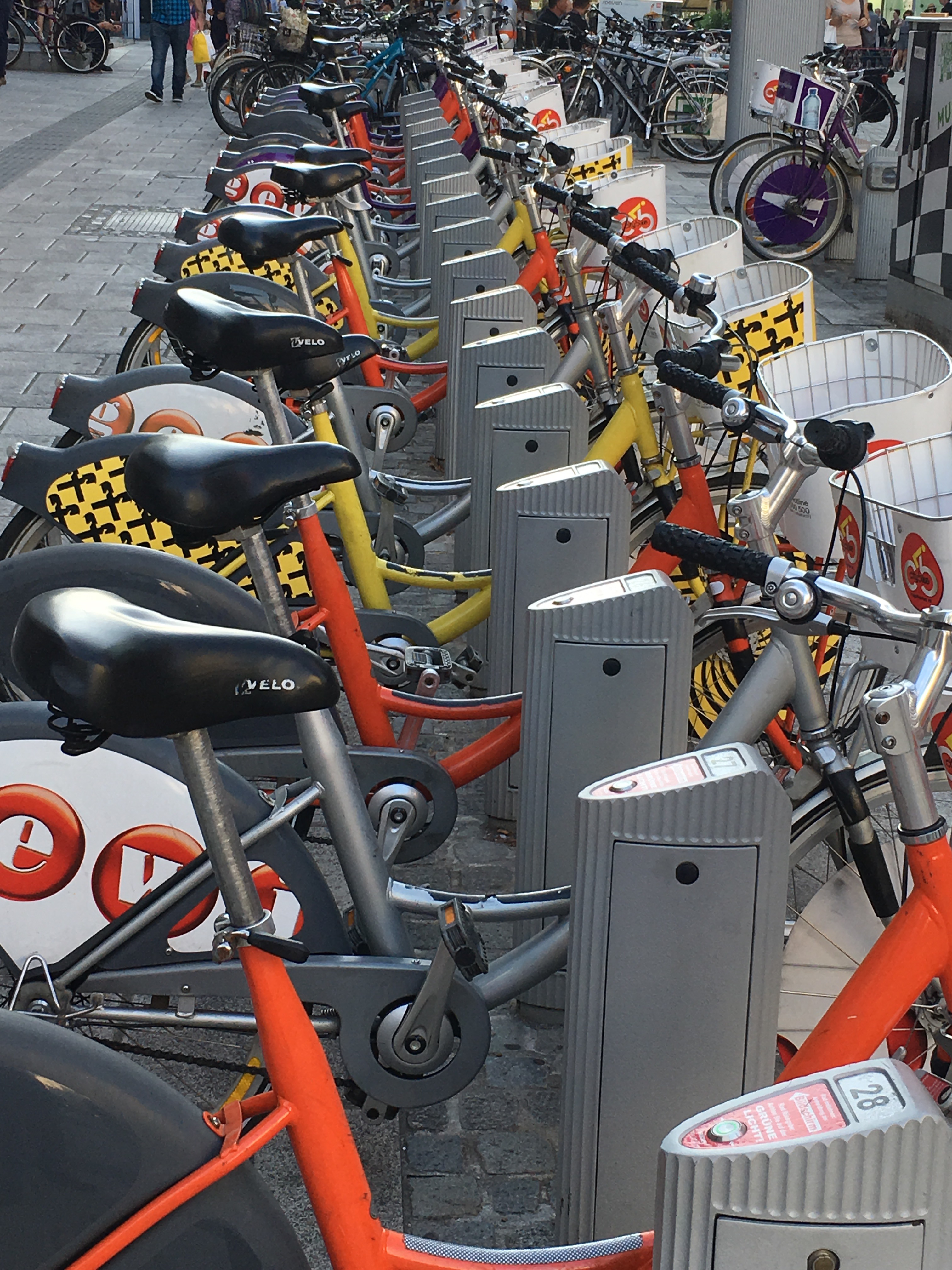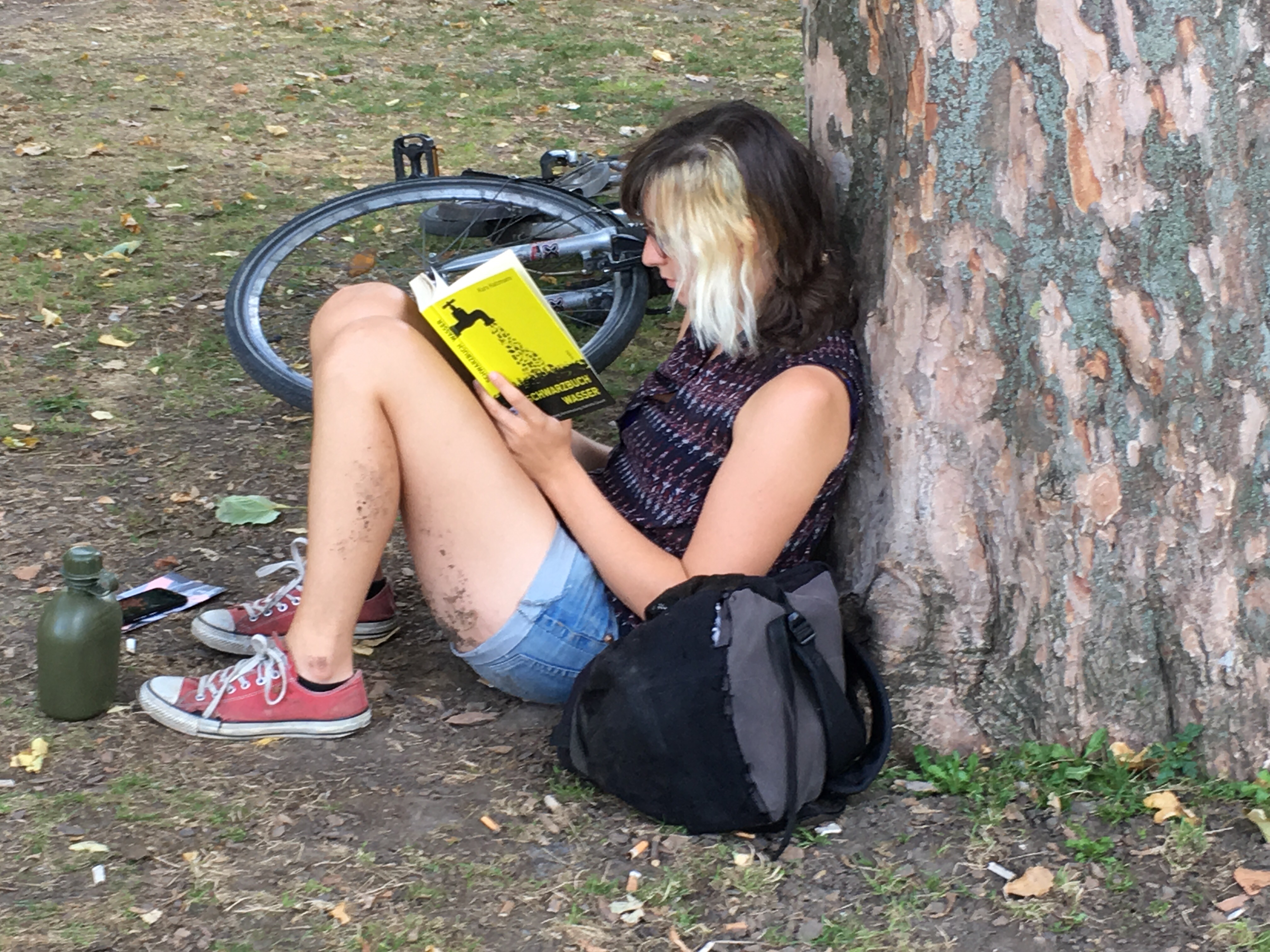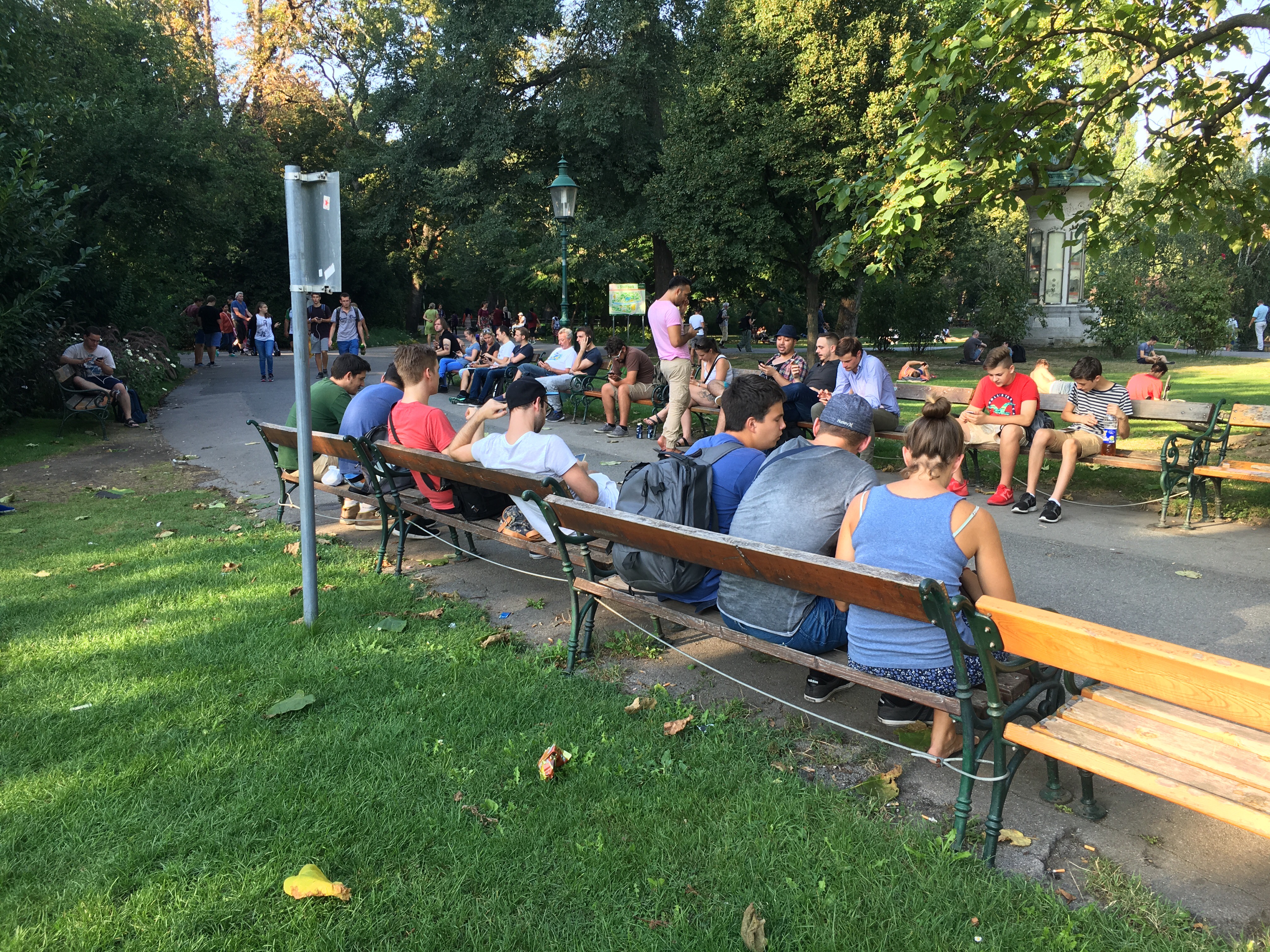 The denizens of Vienna decorated the grass areas and many intently read their books. Differing hair colours seemed the norm . If not on the grass then they sat on te rather grubby wooden benches some curiously protected by steel cables to prevent theft.