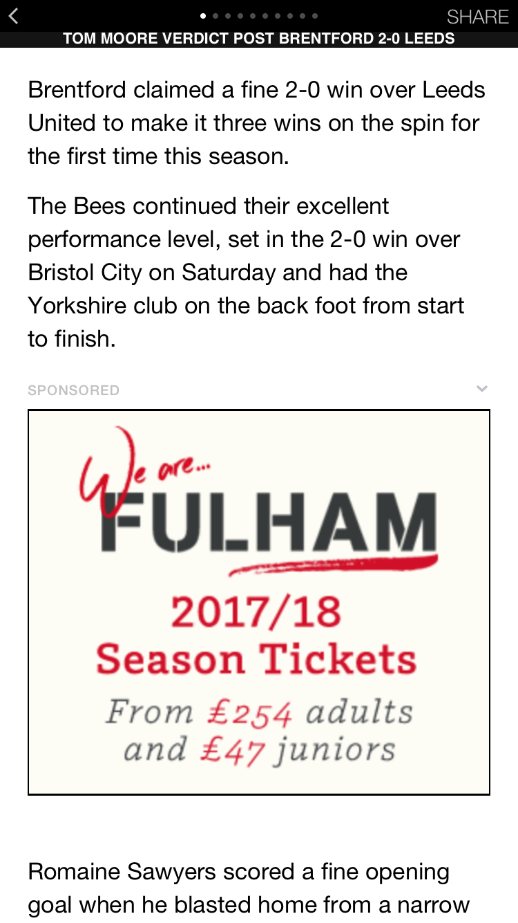 Curious to advertise Fulham season tickets in the middle of a Brentford match report?