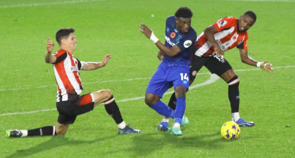 these are photos from a random premier league game in 2023 brentford v west ham and are photos captured randomly during the game with no specific attempt to focus on raised arms , although in some cases it can be argued that arms are used for balance, in many of these it is clearly not the case and risk conceeding freekicks and penalties