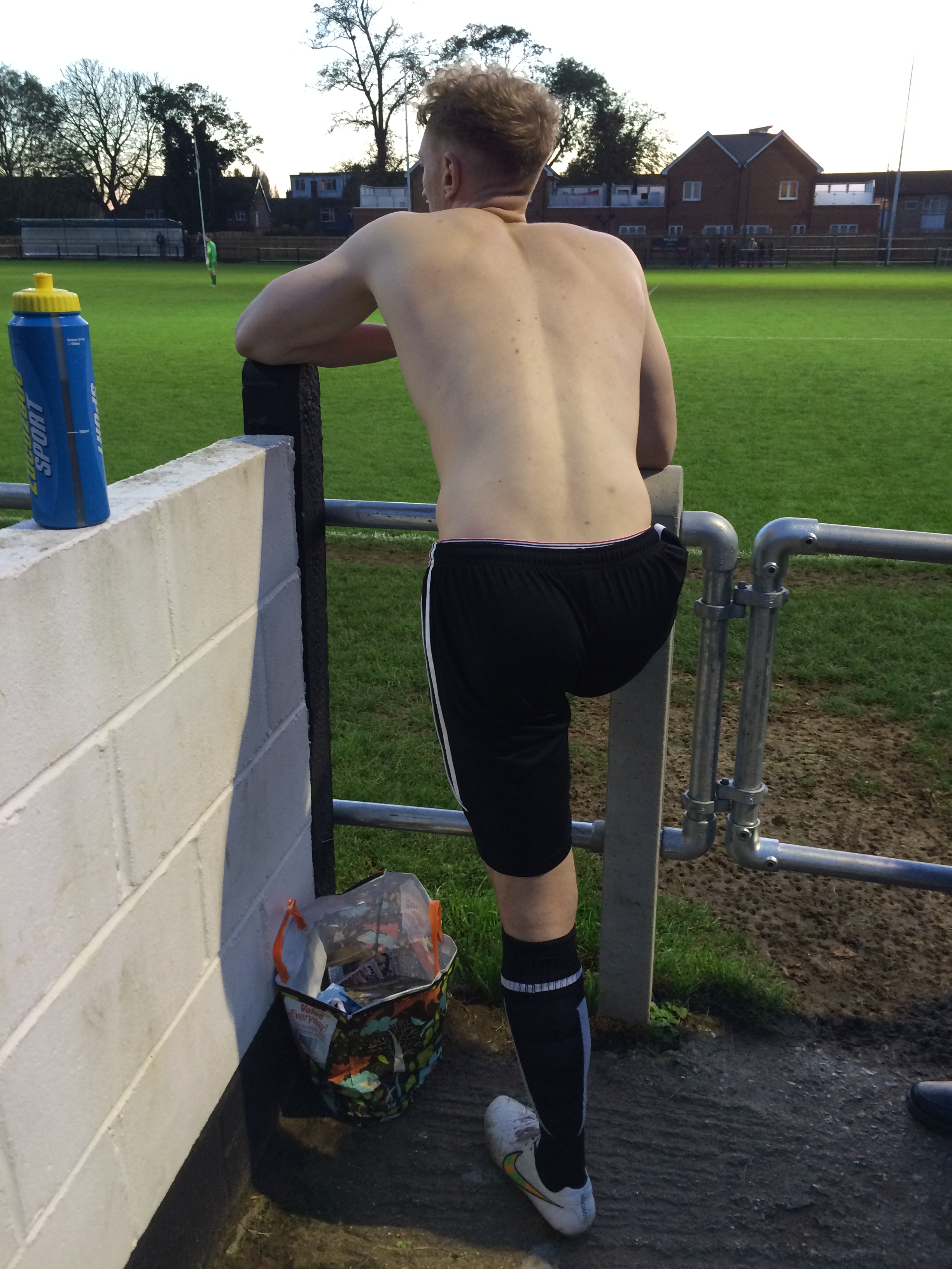 A good game of football. A single goal separated the two teams but in relaity it could have been 3-3. The football was good. The cheeseburger was too. Am not sure of the FA rules after a player is sent off but not sure he should be watching from the touchline even if he does take his shirt off! the crowd was 95, so he made it 96.