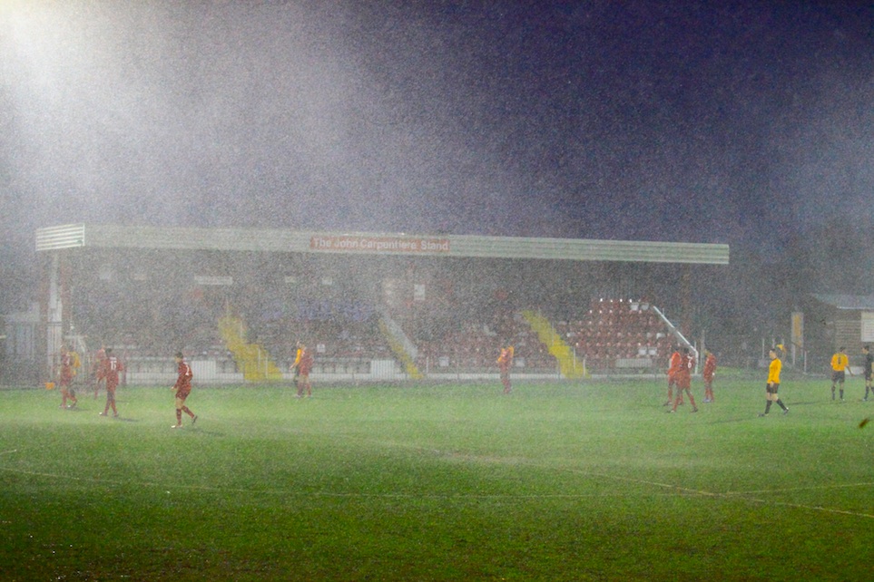 The weather was unhelpful this weekend and many games got called off in non-league but this game thankfully survived. The pitch looked like a mud bath and that was maybe because it was. Having said that the football played was perfectly fine and the ground staff need to take some praise although I understand that not a lot was done to the pitch from the preceding tuesday night game.