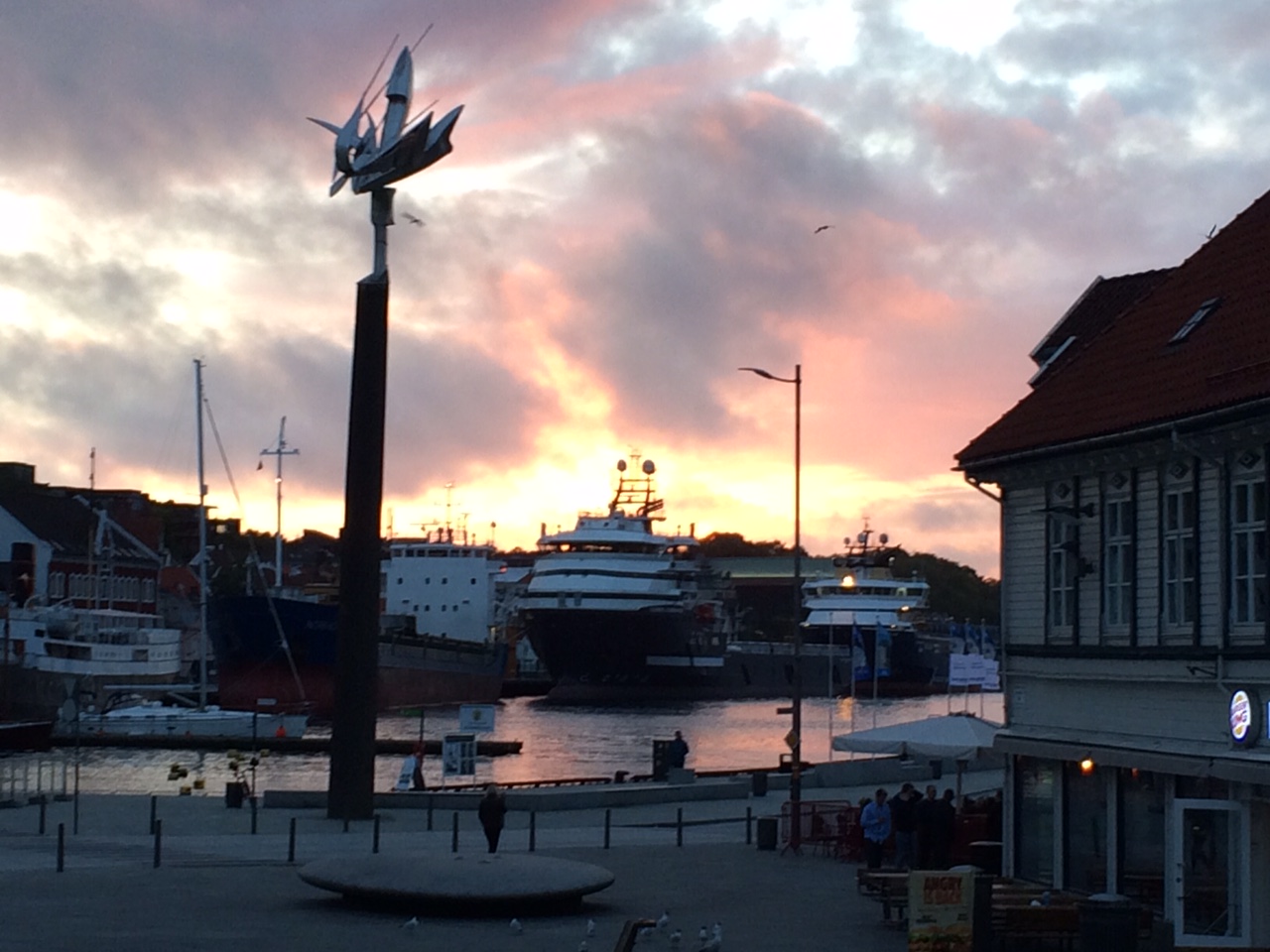 The walk down into the town, described as the “old town”, although not looking that old to me, was a nice walk, where cars were either prohibited or certainly discouraged. The walk takes one along the harbour or we should call it port, as a huge cruise liner from Holland America called “ Rotterdam” ( could their name have been a little more inspiring?) sat right next to the quayside to the extent that passengers could have hopped off any lower tier balconies. In 2011 Stavanger hosted 130 cruise ships. The quayside is lined by bars and restaurants all with nice looking menus that ranged from Reindeer to Burgers with a lot in-between. A few museums poked their heads out as did any number of coffee and snack shops no doubt designed to deal with the cruise liner passenger’s appetite. The whole atmosphere was relaxed and happy. Bars promised live music in the evening and the beer was flowing it seemed all day.