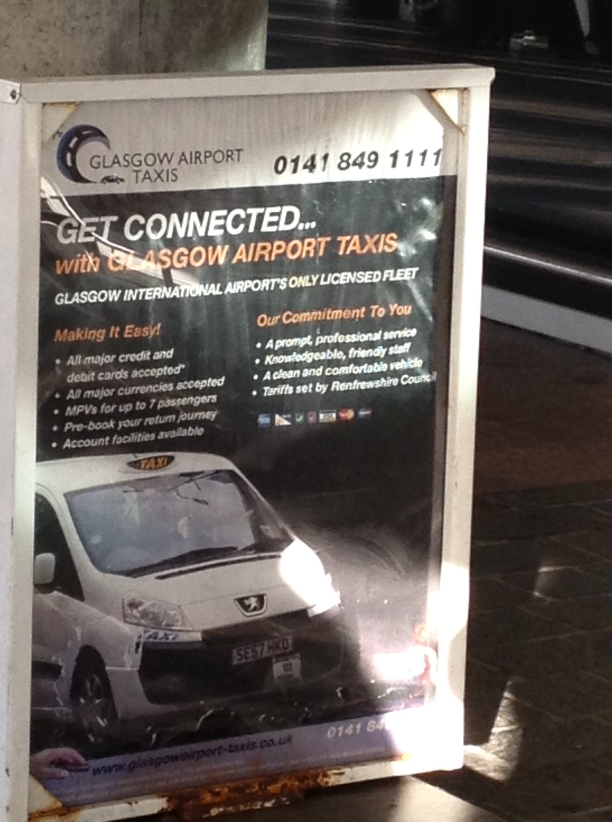 Irn Bru looked too dangerous to try. As for the Blue Police box, is this serious? The planes had propellers, ok, I exagerrate a little, but not so much. Glasgow airport looked quite dead compared with previous visits. Few planes coming and going. A million shops selling “real fish and chips”.