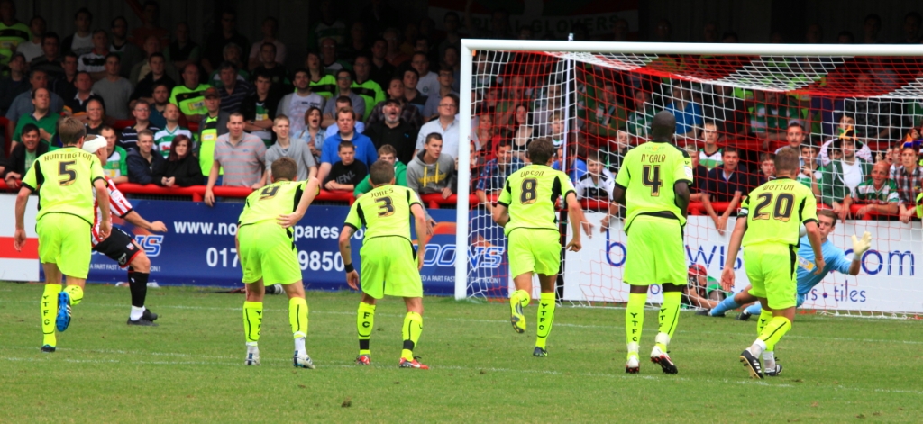 As they say ” we are too big for this league……the barcelona of the lower leagues”. Nonsense really but what a great start to the season yesterday. Brentford winning 2-0 against a decent yoevil team. Crowd of 6300. Great atmosphere. Team played well, worked hard and we saw one of the best celebrations ever seen at Griffin Park. double somersault and flip from Shaleum Logan, the right back who scored the second goal. A little story here. He was given a free transfer from Man city end of last season and is a bit like Ijah Anderson ( if anyone remembers him). Was frozen out at Man city and was not allowed to train with the first team ( suspect some things we dont know about). First goal was a penalty from Gary Alexander who was wearing what charles cruelly described as a turban ( 7 stiches from training accident, presume not a fialed lobotomy). Team were high tempo, and one of the most high tempo games seen for a long while. Yoevil, decent side but not brilliant finishers. Richard Lee made 2 good saves, and has emailed me again to ask if I mind him putting the photos I took and sent him on his website. Of course not!