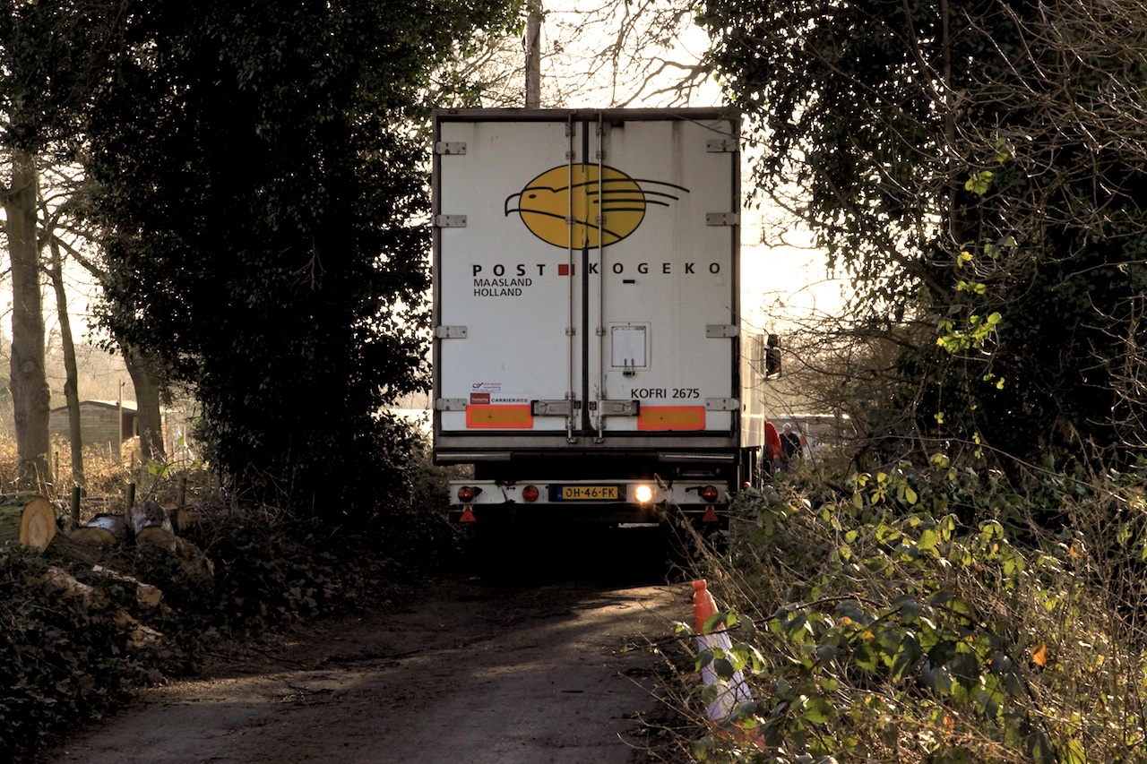 So we set off today with a pair of greyhounds and find a massive articulated lorry trying to drive down this lane. Firstly, where did he think he was going? Secondly having turned into the lane at the top it must surely have given him a clue that all was not right. This is not exactly supermarket land . But then he kept going for about half a mile until he found the dead end and he also found low electricity cables that he was about to successfully electrocute himself with and deprive the good folks of Hersham of their electricity on one of the coldest days of the year. His reward for this stunning behaviour was that he had to reverse his lorry the complete way back to the main road. I took no chances and moved my car well away from this excitement and hid it in the cemetery car park until he was gone.