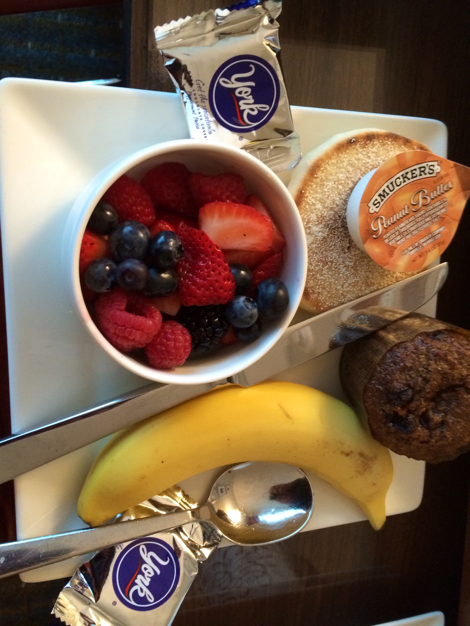 Then finally. A usual issue, large USA portion size. You order an omellette and along comes another two meals. All nice and good. But a 3-egg omelette is maybe big enough, but combined with half a loaf of sourdough bread , cleverly disguised as 4 slices of toast heavily buttered. And a decent size portion of fruit too. Then unlimited coffee, which happened to be Blueberry Crumble flavoured, curious choice but a good choice. Finally the offer to also have a takeaway coffee, maybe to put me over the DSM-5 limit for caffeineism. But excellent quality and all served by a Selena Gomez lookalike………so did she get a tip yes. But most unlike UK she actually entered into a meaningful discussion with me, enetrtained me and seemed/was genuinely interested in what I had to say. Which made simple was do not go near UK and go to Amsterdam instead………