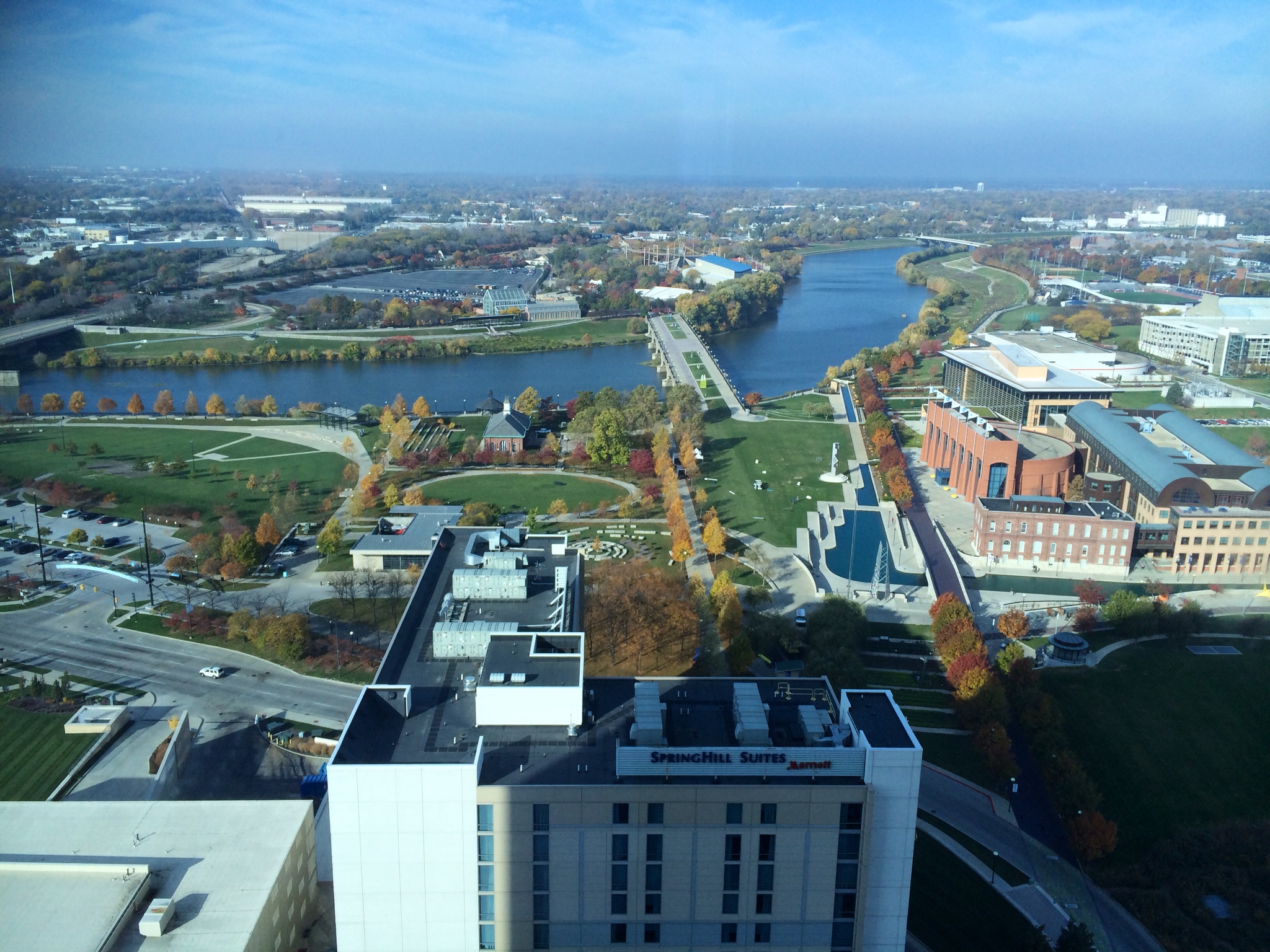 So sitting here at sunset. The views over Indianapolis are truly pleasant. The food was free. Things are really not too bad at all.