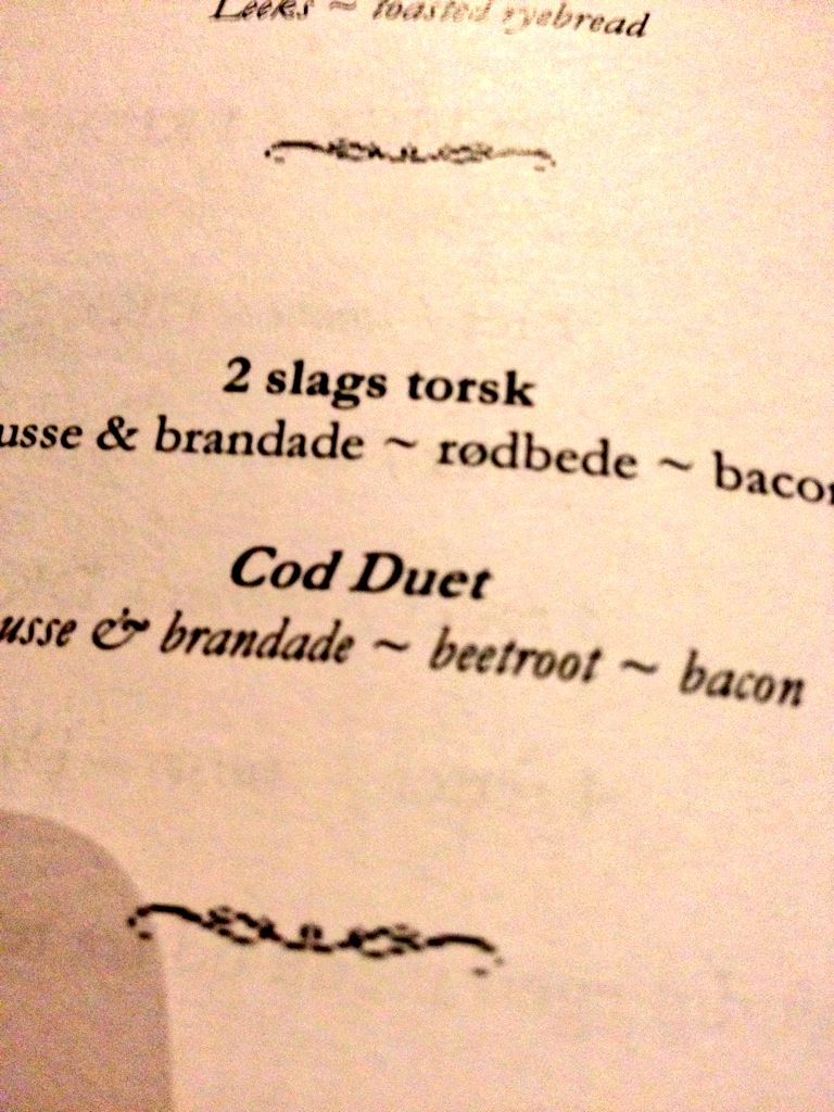 Just made me laugh anyway. Two types of cod and very nice they were too.