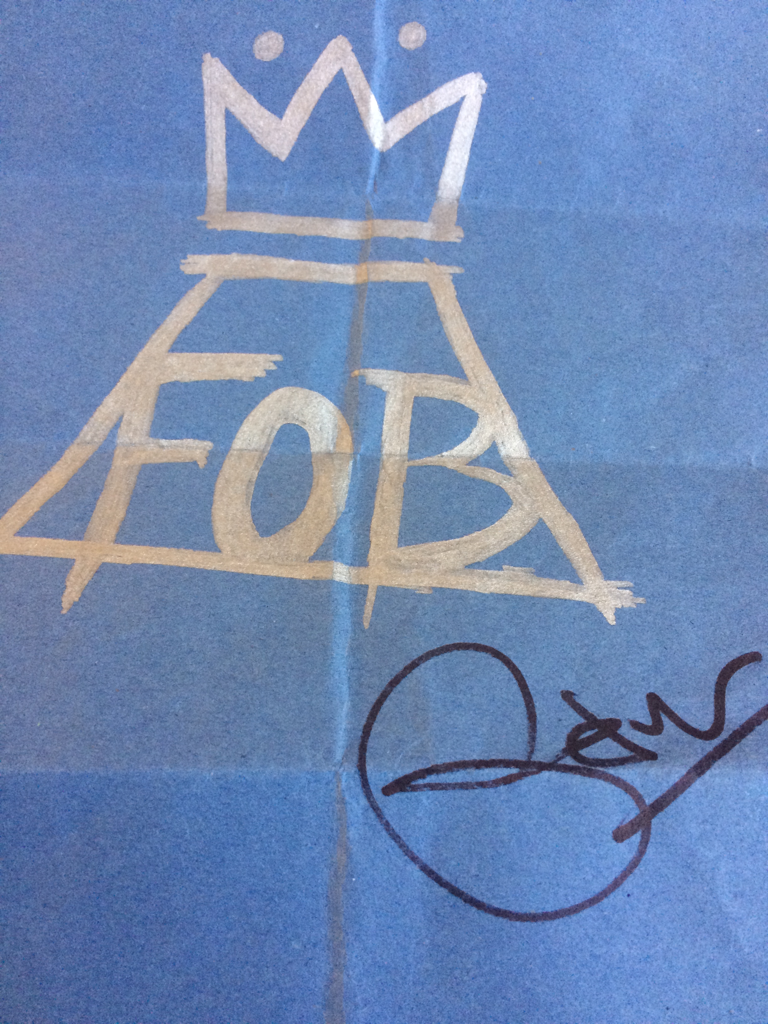 Pete Wentz is the 36 year old bassist and backing vocalist for the American band Fall Out Boy , currently in the middle of a UK tour. By all media accounts a decent guy with two children with interesting names.Bronx Mowgli Wentz, Saint Lazslo Wentz. On sunday Oct 1th Fall Out boy play SSE Wembley venue in the evening and last week on some twitter account it was advertised, though quietly that Pete Went would be holding a “meet and greet” with a limited number of fans sunday lunchtime. There was little said on Twitter about this probably because on each of friday, saturday and sunday, the wristbands for the “meet and greet” were only available each day to the first 40 people who each bough at least £25 of “merch” from a pop up shop in Camden town called ” Rock and Roll Rescue”. Hence on each of the last three days there have been queues with some people queueing all night for the prize of being in the first 40 people in the queue. The shop is an unassuming shop not far from Camden Underground station that is run as a charity shop however for the 3 days they have packed their merchandise away to turn it essentially into a shrine to Fall Out Boy filled with various T-shirts, hoodies and other “merch”.