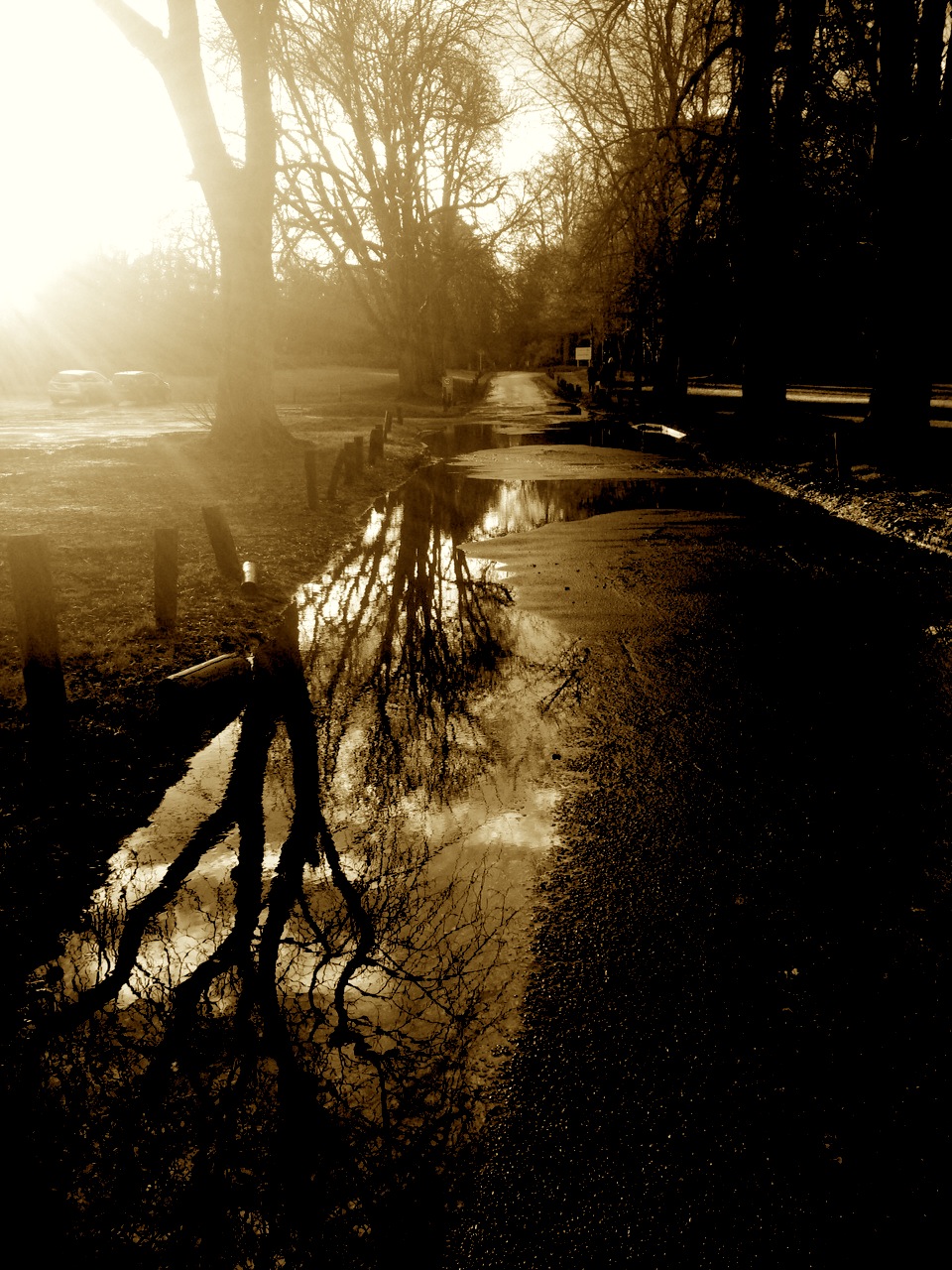 Nonsuch Park is an under rated park amongst the many in Surrey. Nonsuch school sits in one corner and there are times of the day when maybe the car parks are best avoided. By chance I was there this afternoon as the sun was going down, the rain had stopped but with only the I Phone as a camera. These photos attempt to capture a chill winter late afternoon. A certain amount of adult ADHD was also apparent in those attempting to leave the car park.